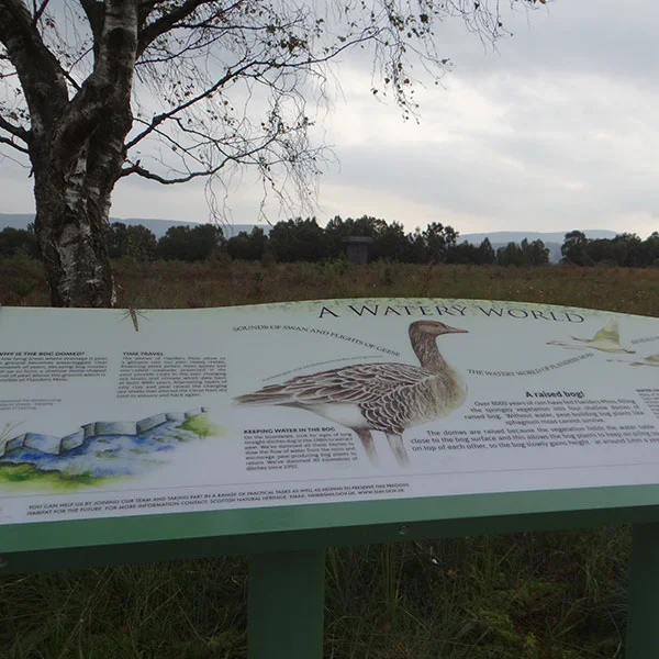 Our role was to interpret the needs of the site and write the text and interpret the Interpretation Management Plan. We also illustrated the panels with wildlife, historical and management subjects. The resulting panels were produced in GRP.